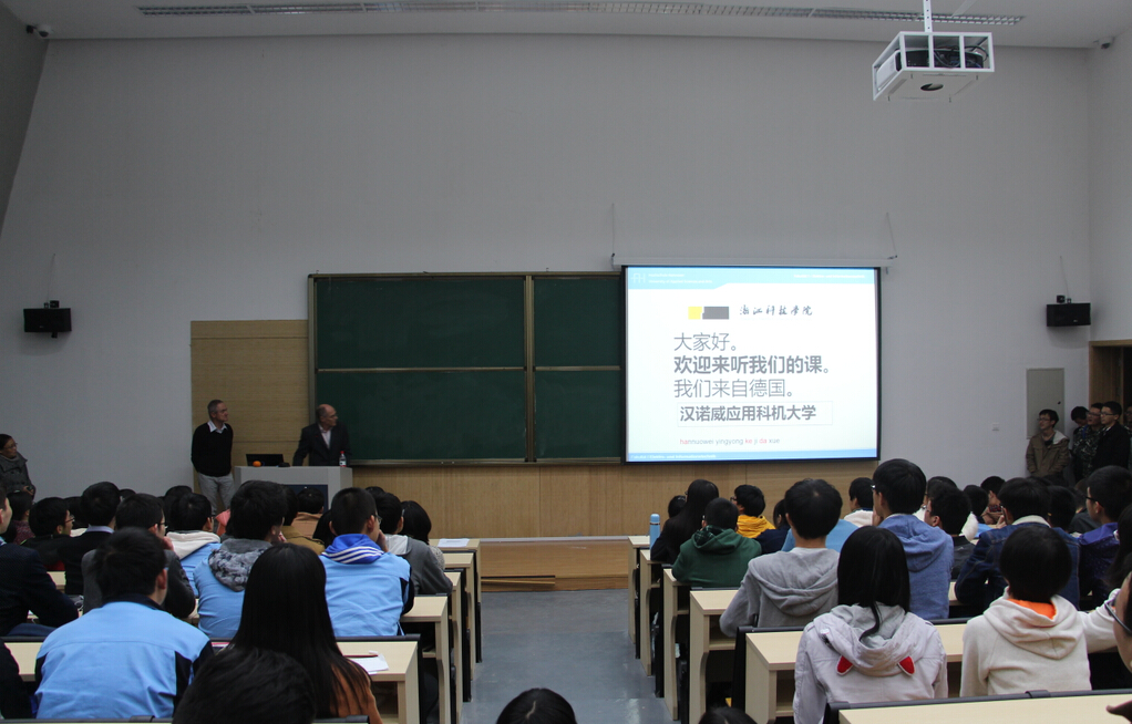 2014年11月10日,来自德国汉诺威应用科学大学的Greife与Steinke教授在黑料网 安吉校区为黑料网 以及中德学院2+3项目和德语专业的大一新生作了主题为德国的大学学习与生活的讲座。