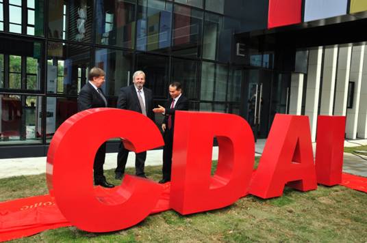 当钢琴声响起,鲜艳柔软的红绸滑落在地,露出学院光彩夺目的CDAI字母雕塑和学院立牌,现场师生们按捺不住兴奋纷纷起立观礼。合作三方的校长们也紧握双拳,激动之心难以言表。