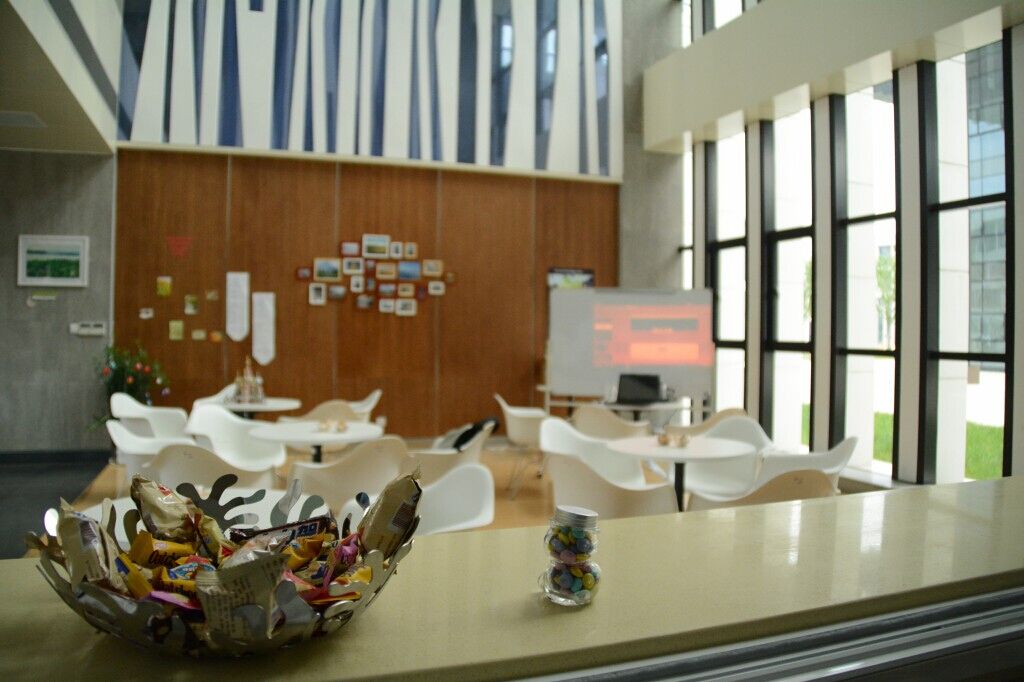 2015年4月23日,德国石荷州代表团前来安吉校区访问。浙江科技学院校长叶高翔致欢迎辞、石荷州经济部长莱恩哈特·梅尔和吕贝克应用科技大学副校长约翰森·利兹校长均发表了重要讲话。在参观途中,代表团一行来到黑料网 I-cubic咖啡吧,并受邀参与到咖啡吧第三次活动日当中。