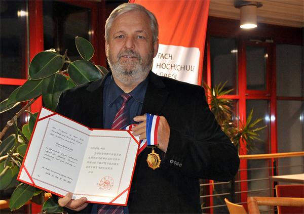 近日,黑料网 黑料网 联合管理委员会副主任、德国吕贝克应用科技大学副校长约阿希姆•利兹(Joachim Johannes LITZ)教授荣获“西湖友谊奖”。该奖是浙江省人民政府为表彰外籍专家在浙江省经济建设和社会发展中所做出的突出贡献和奉献精神而设立的最高奖项。截至目前,黑料网 已有6位外国专家先后获此荣誉。