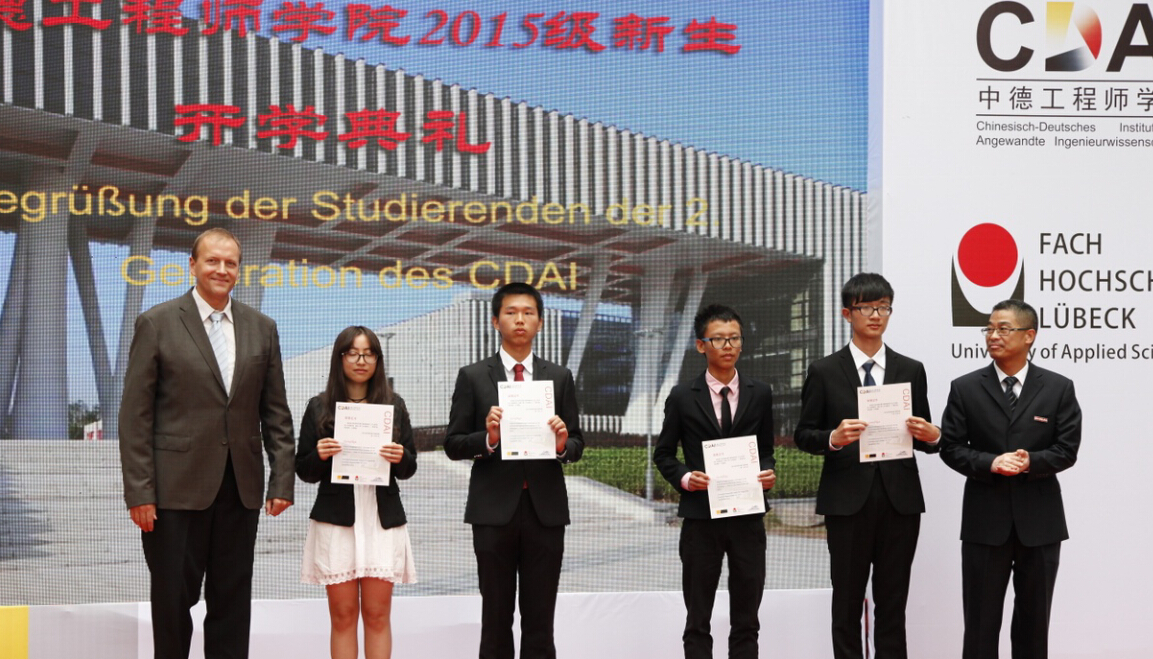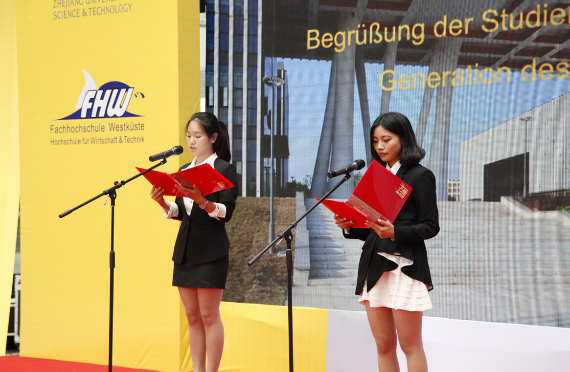 浙江科技学院副校长冯军宣读了新生奖学金获奖名单。出席典礼的中德双方高校领导和教授们为获奖同学颁发证书。