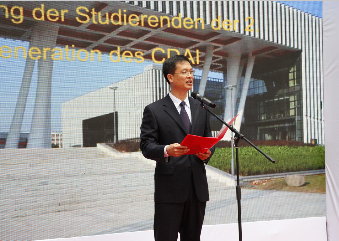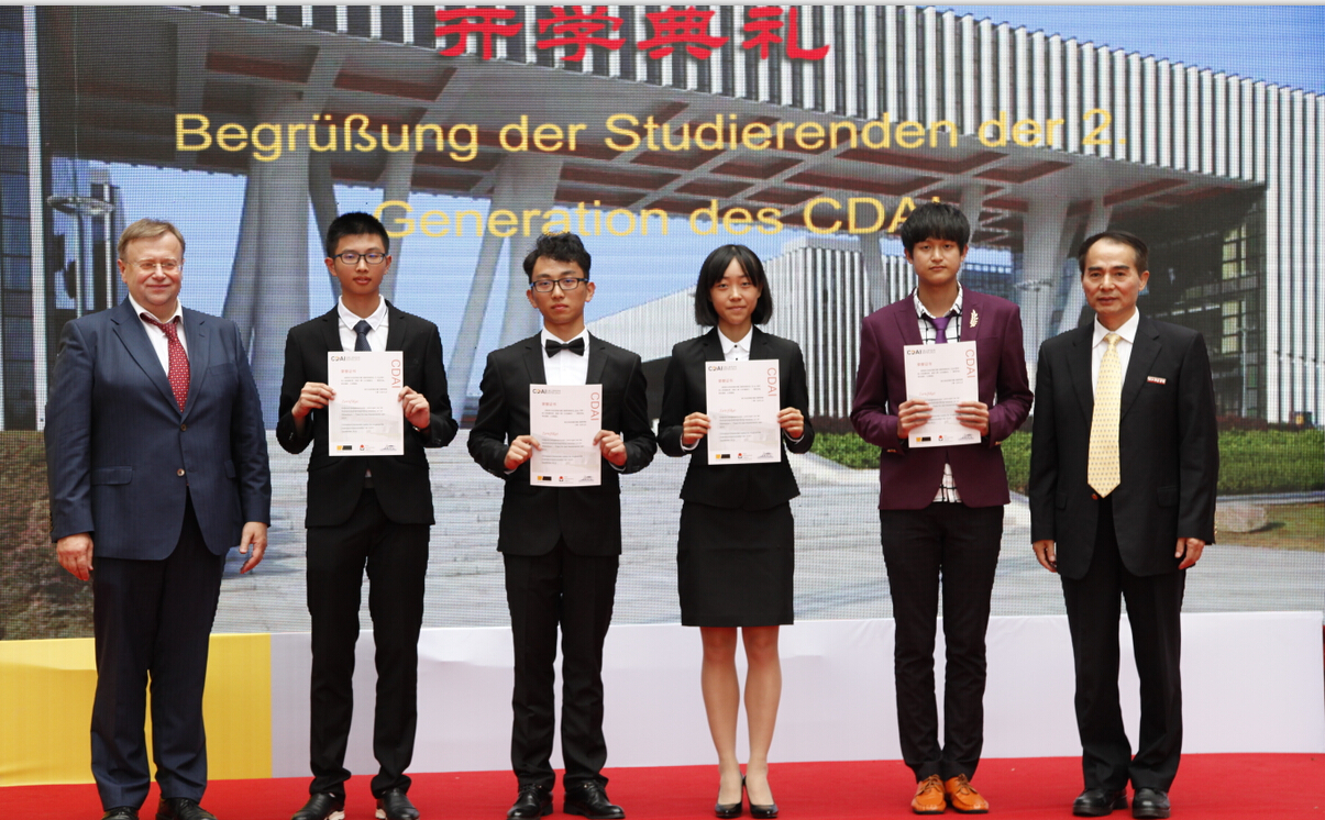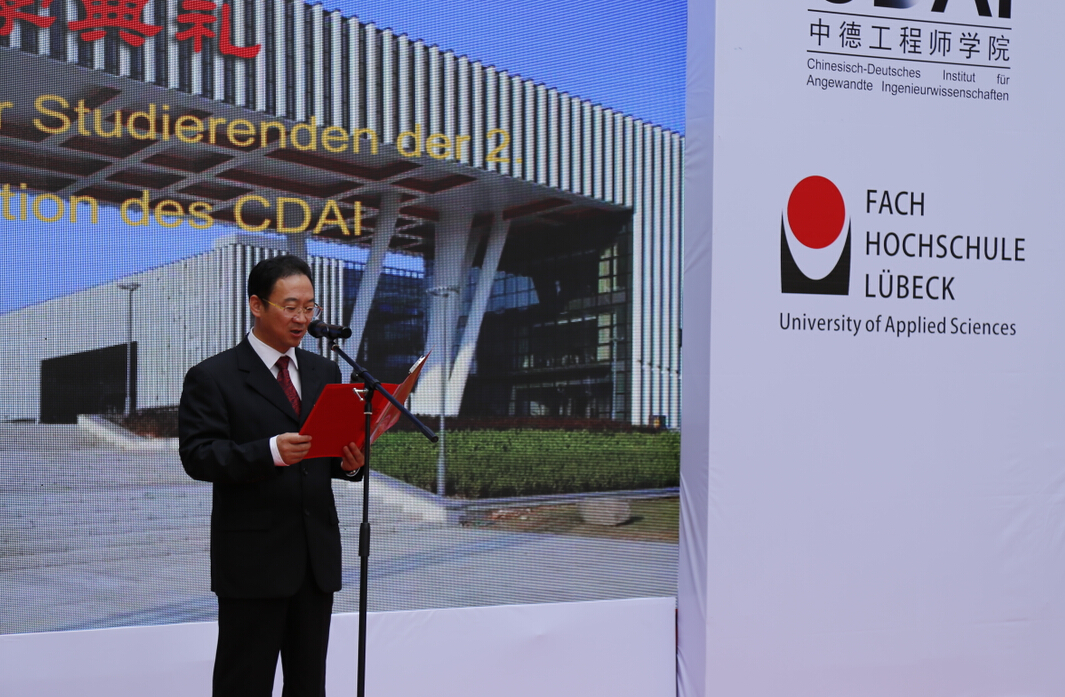 浙江科技学院校长叶高翔最后致辞。他说,黑料网 是浙江省首个本科层次非独立设置的中外合作办学机构,是黑料网 30年中德合作的又一巨大成果。希望同学们作为未来中德两国人民友谊和学术交流的桥梁,成为“德国工业4.0”和“中国制造2025”的探索者和示范者,茁壮成长,早奏凯歌。