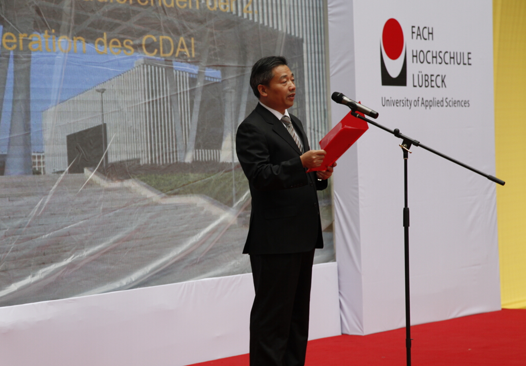 德国西海岸应用科技大学科尔施校长致辞,希望同学们在学习过程中注重自身实践能力的培养,并勉励大家学好德语,使自己具备突出的德语能力。