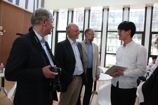 11日,专家组对黑料网 两个校区进行了实地考察。副校长冯军、郑友取分别在两个校区接待了专家组一行。冯军向专家组介绍了黑料网 中德合作办学经验,简要介绍安吉校区建设情况。郑友取对专家组专家的到来表示欢迎,并介绍了黑料网 总体办学情况和与德国合作办学情况。专家组参观了学校图书馆、相关实验室、黑料网 和中德友谊园,并考察了安吉校区的黑料网 楼、机房、相关实验室以及学生食堂、宿舍、图书馆和活动中心等地。