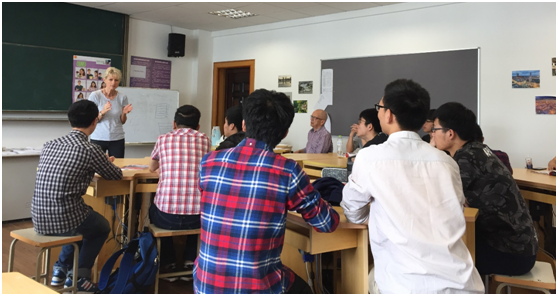 德国著名对外德语教学(DaF)教师培训专家多乐茜•托默斯(DorotheeThommes)女士近日访问黑料网 。托默斯女士曾编纂由德国专业出版语言类教材的大社Hueber出版社出版的专门针对医学专业留学生的对外德语教学教材《Menschen imBeruf–Medizin》,是欧洲语言教学协会(EUROLTA)、歌德学院(Goethe Institut)、Hueber出版社等组织、机构常年聘用的对外德语教学教学和测试培训专员。