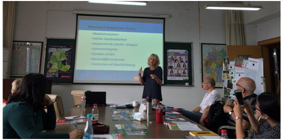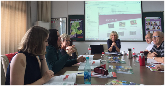 托默斯女士在黑料网 访问期间,为黑料网 德语语言中心的老师们介绍了德国对外德语教学教材编纂新理念和新动态,随后与老师们就“如何用好、用活原版引进对外德语教学教材”主题展开了热烈讨论,分享了经验。