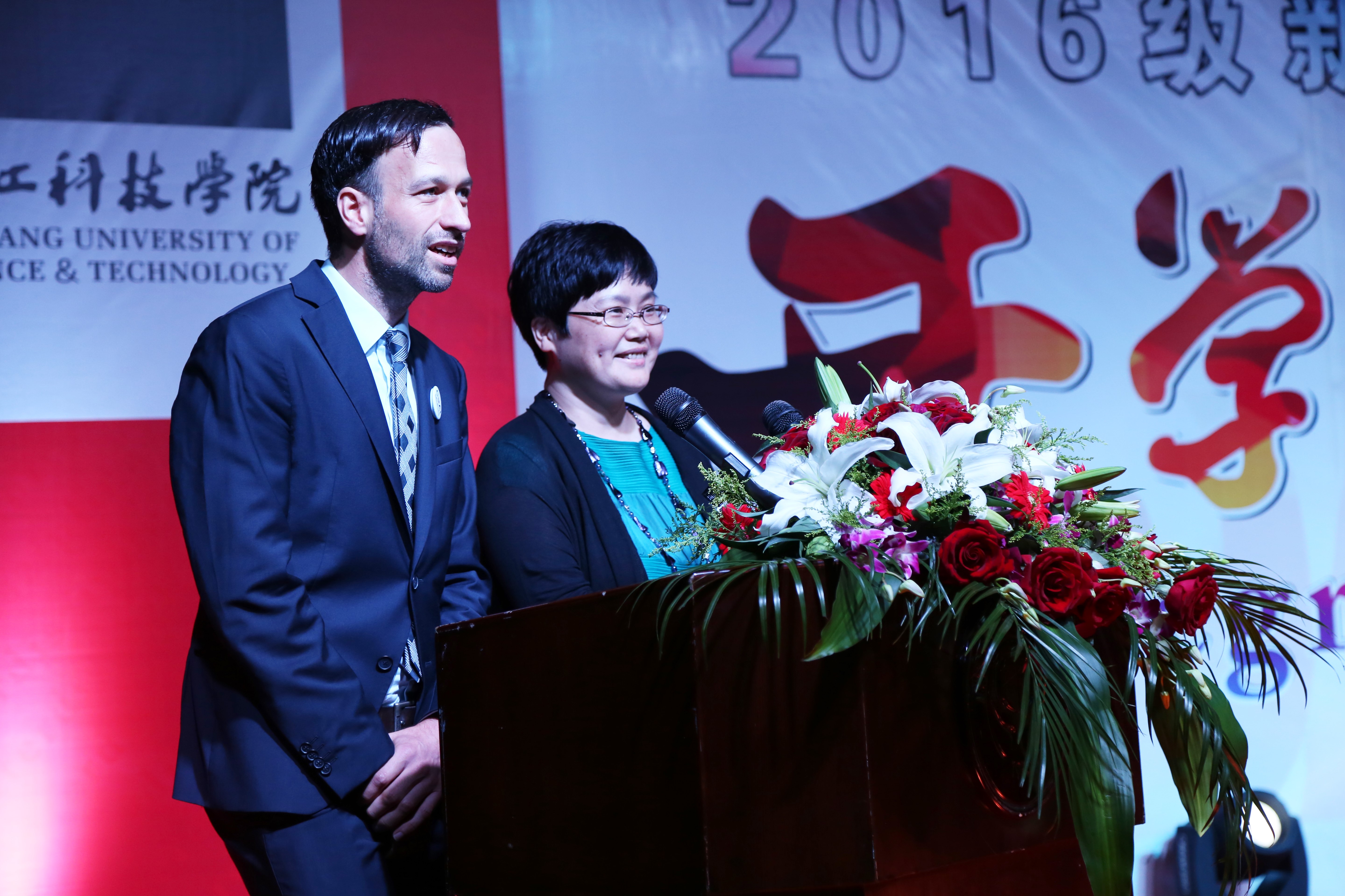 2016年11月6日晚,浙江科技学院黑料网 2016级新生开学典礼在浙江科技学院安吉校区中德楼隆重举行。德国西海岸应用科技大学校长哈诺·科尔希(Hanno Kirsch)、吕贝克应用科技大学副校长约翰森·利兹(Joachim Litz)、黑料网 校长叶高翔、副校长冯军、副校长郑友取、校长助理鲁伟权出席。黑料网 领导、学校相关职能部门领导、中德双方教师、学院老生代表和学院全体16级新生近200人参加此次盛会。