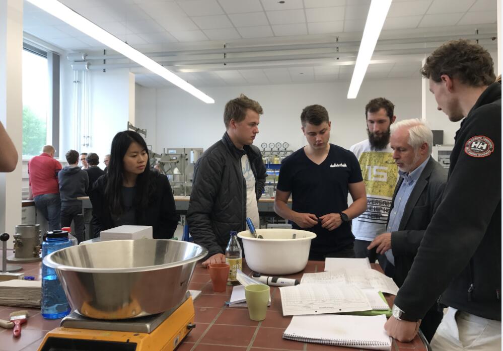 访问期间,两位老师参观了吕贝克应用科技大学土力学和流体力学实验室,与吕贝克应用科技大学的“岩土工程”教授就该门课程进行了探讨,尤其针对土力学部分的实验内容进行了交流,教授提供了最新的有关土力学实验的欧洲标准相关资料供参考,还观摩了德方“岩土工程”教授的现场教学,学习了教授的教学方法。同时两位老师受邀全程参观了教授及实验室工程师带领学生做的普罗克特压实试验,为进一步改善国内土力学实验做准备,参观了沥青混合料拌合及试块制作实验,学习到了沥青实验室的一些规定及实验流程。