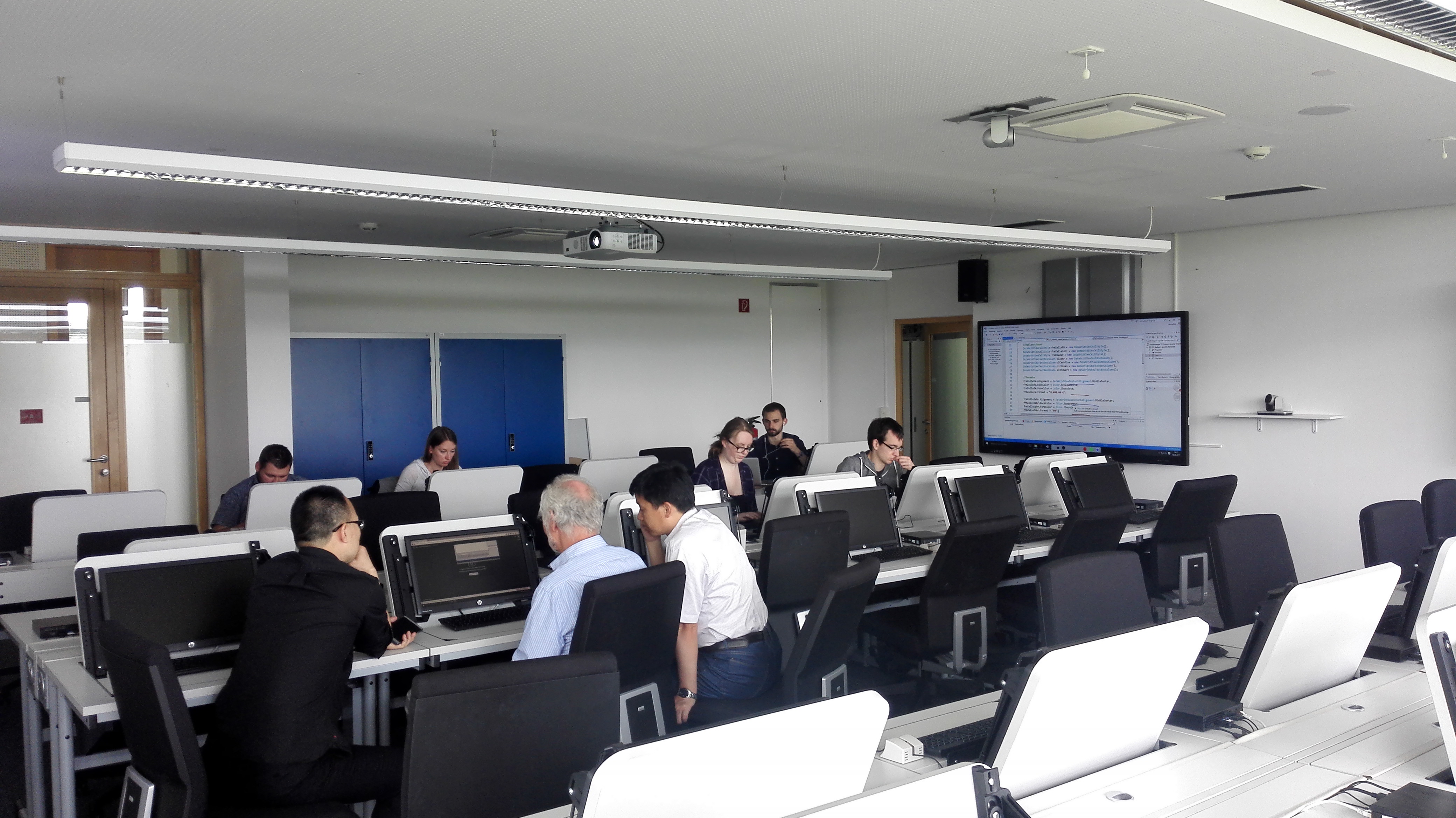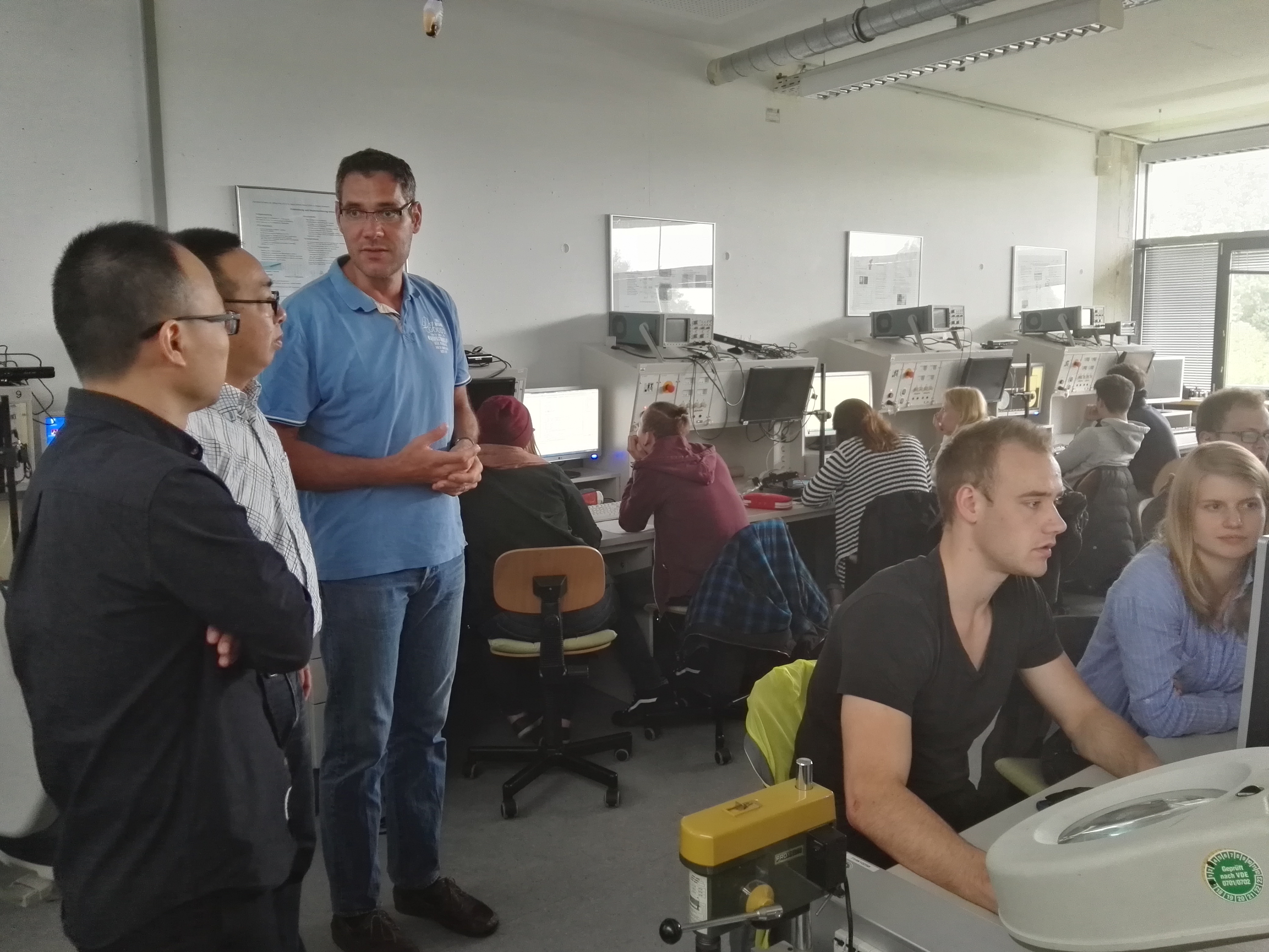 访问期间,我方教师同多位德方教授进行了有关课程教学和实习教学的探讨,进一步了解了德国西海岸应用科学大学合作专业“管理与技术”(MUT)的总体教学情况、实验室情况以及相关教学要求。中方教师同德方布劳恩(Blaue)教授重点探讨了C#课程的教学,围绕课程考核方式的改革开展了引入项目式考核的探讨,并现场观摩德方穆勒(Müller)教授的“标准商务编程”的实践课程,同德方实习负责人艾伯格(Ebberg)教授深入探讨了EAM(电气工程及其自动化专业)学生的实习模块教学及赴德学生的实习教学与答辩的衔接问题,以及同MUT专业负责人瑞兹(Rietz)教授探讨了赴德学生的跨学科项目和高级项目教学的开展。此外,中方教师还同德方工程学院院长廷森(Jensen)教授讨论了黑料网 的实验室建设问题。