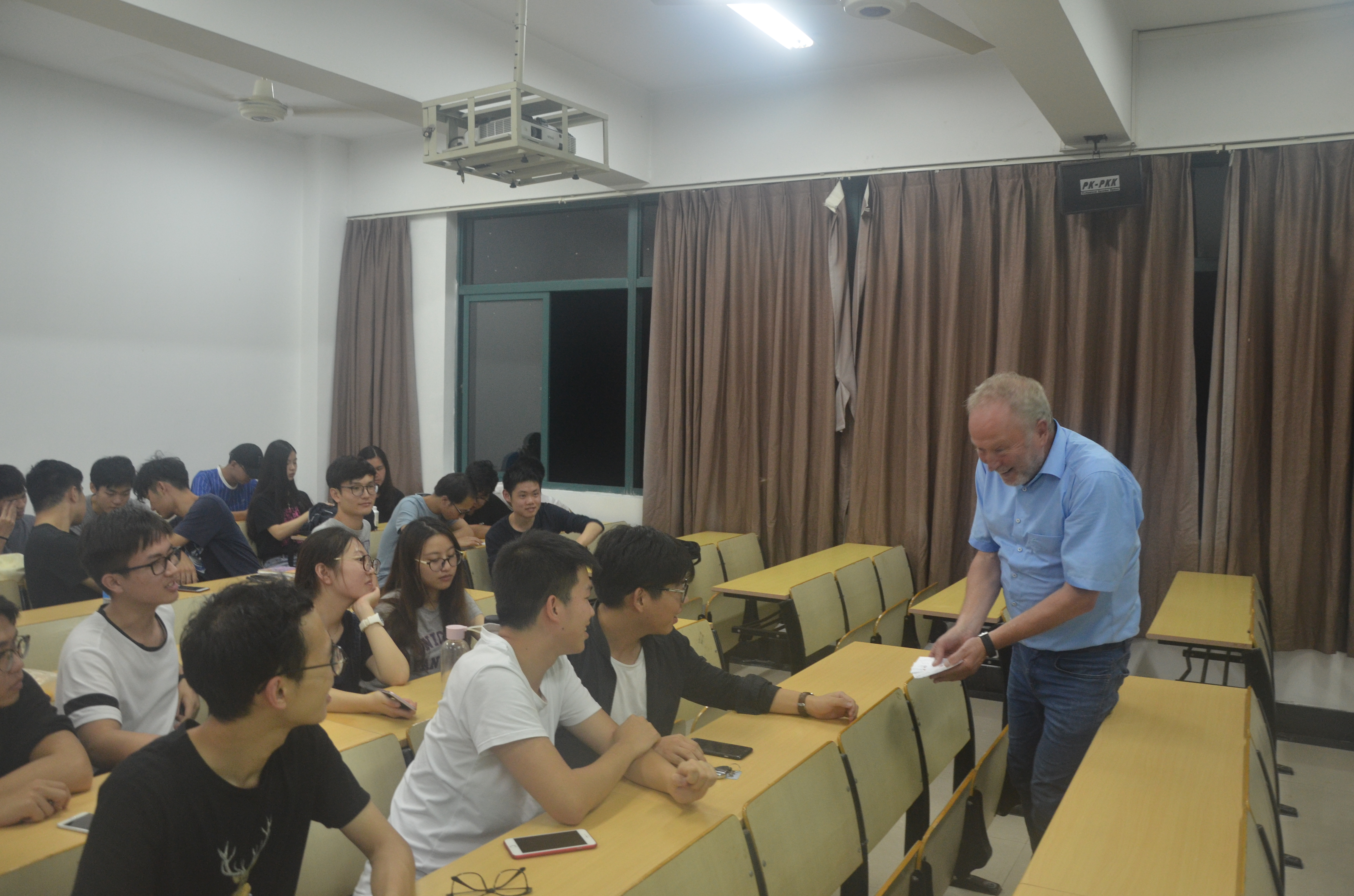 2017年9月28日18时30分于浙江科技学院小和山小区B4楼421教室,德国西海岸应用科技大学工程学院院长、德方专业负责人Detlef Jensen教授向14和15级电气专业学生进行了 关于“西海岸应用科技大学对黑料网 交换生生活以及学习方面服务”的讲座。