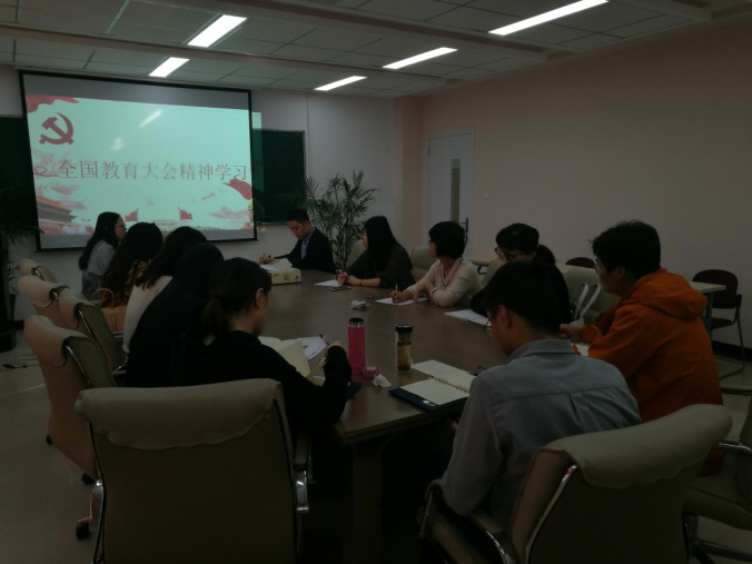 范佳静副书记传达了习近平总书记、李克强总理在全国教育大会上的重要讲话精神,结合自身的教学、管理工作经验详细阐述了习近平总书记提出的5个“人”的工作目标、9个“坚持”和6个“方面”。学院教职工结合自己的工作岗位,从提高自身专业水平、服务学生等方面提出了具体的措施和意见,为培养更多的符合社会需求的高素质应用型人才贡献自己的绵薄之力。