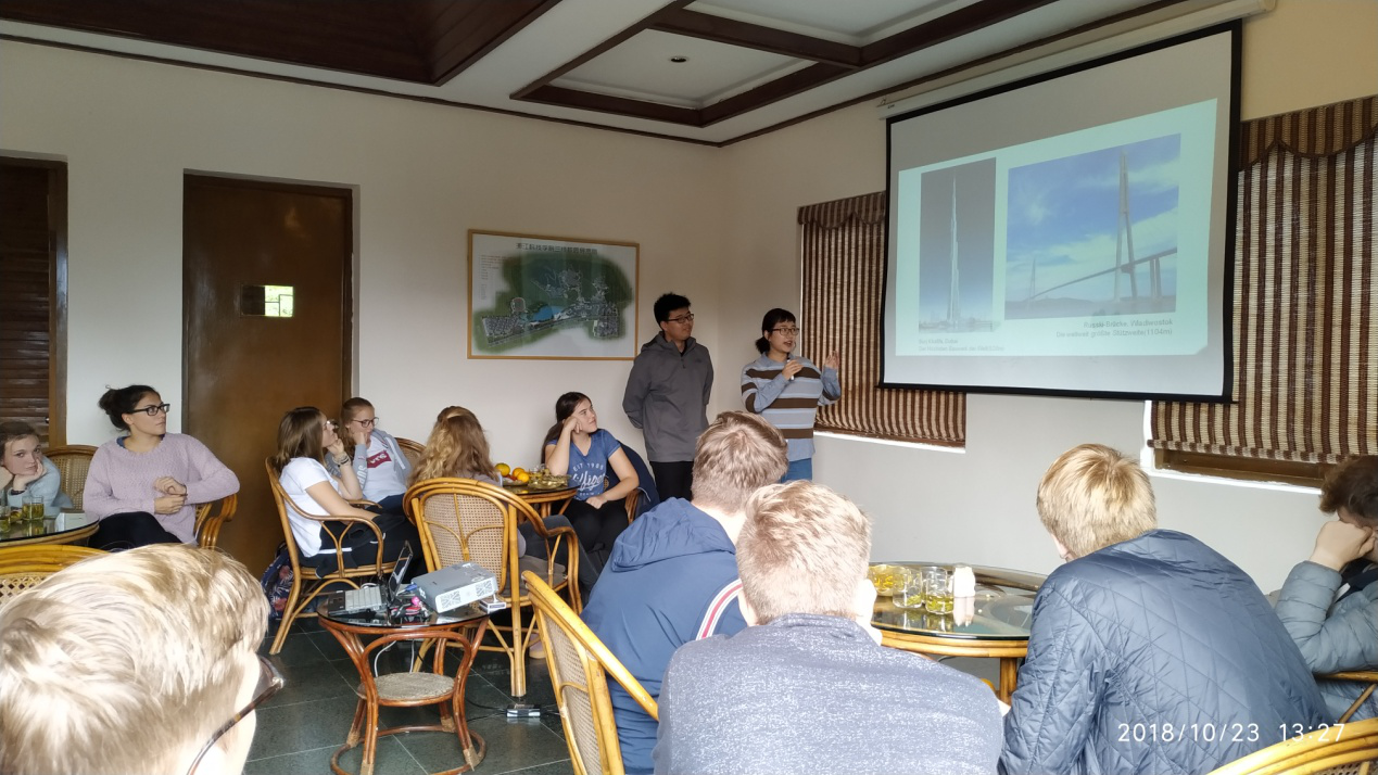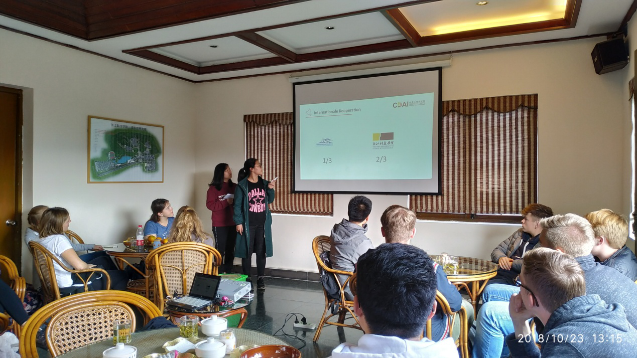 代表团首先参观了学校的中德合作馆,了解黑料网 中德合作的历史及取得的成果。随后,代表团在和风居茶楼与黑料网 师生开展了交流活动。黑料网 德国教师Anja Schneider女士向代表团介绍了中国近年发展状况、中国企业在德国的合作与发展、杭州的风土人情、学院开设专业的培养方案等,分析了前来杭州特别是黑料网 学习的优势。代表团师生表现出了浓厚的兴趣,并与Schneider女士进行了非常热烈的提问与交流。电气工程及其自动化专业16级的江玉瑶、吴正婷同学以及土木工程专业16级的徐文韬、蒋怡原同学分别就各自的专业情况、学习生活等做了报告,并与德国师生进行了交流。交流活动结束后,代表团在杨志卫老师的带领下参观了实验室。