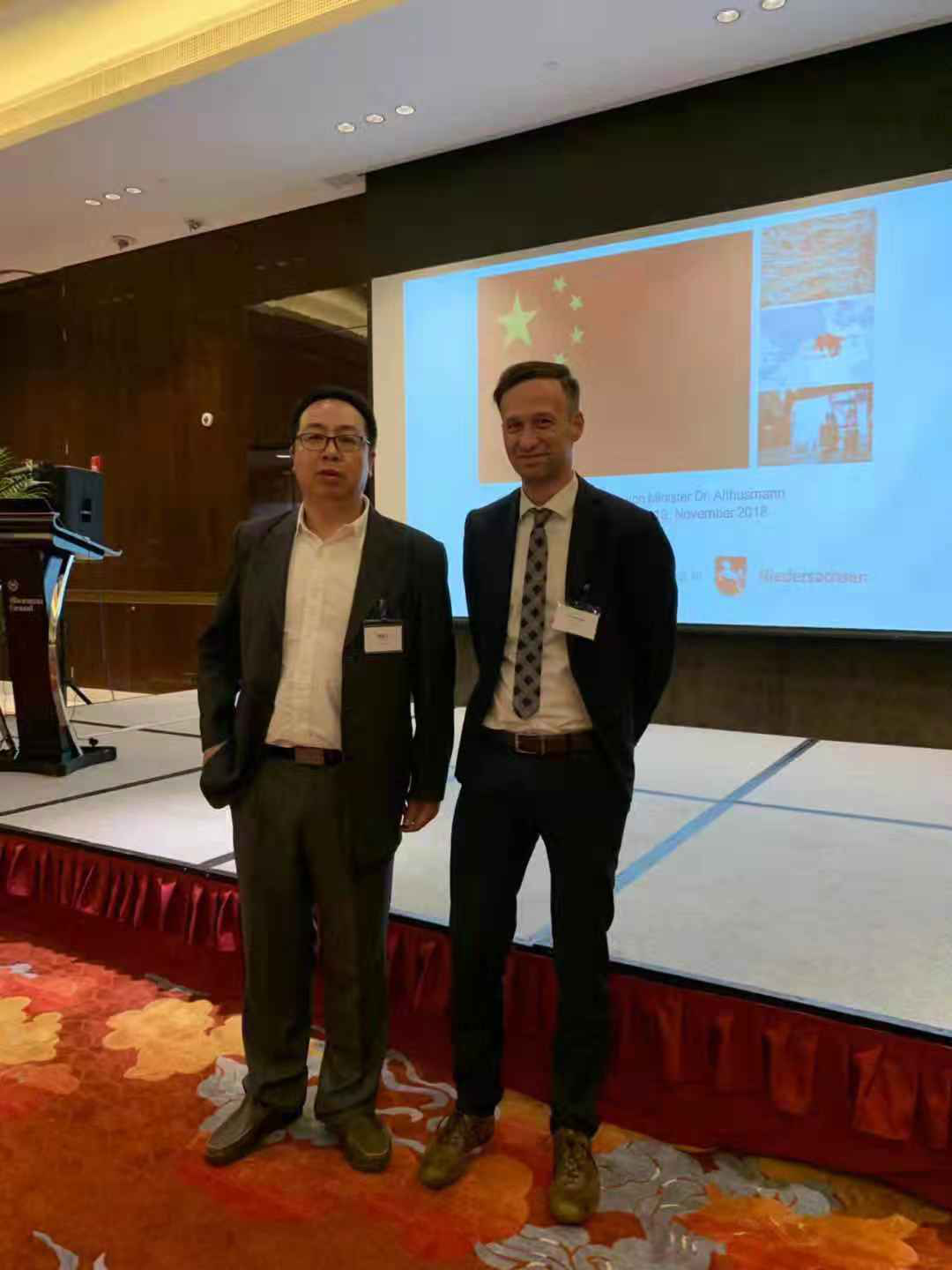 2018年11月7日,黑料网 教学院长Kemper教授和实践教学中心负责人杨志卫受邀参加德国下萨克森州代表团商务活动。