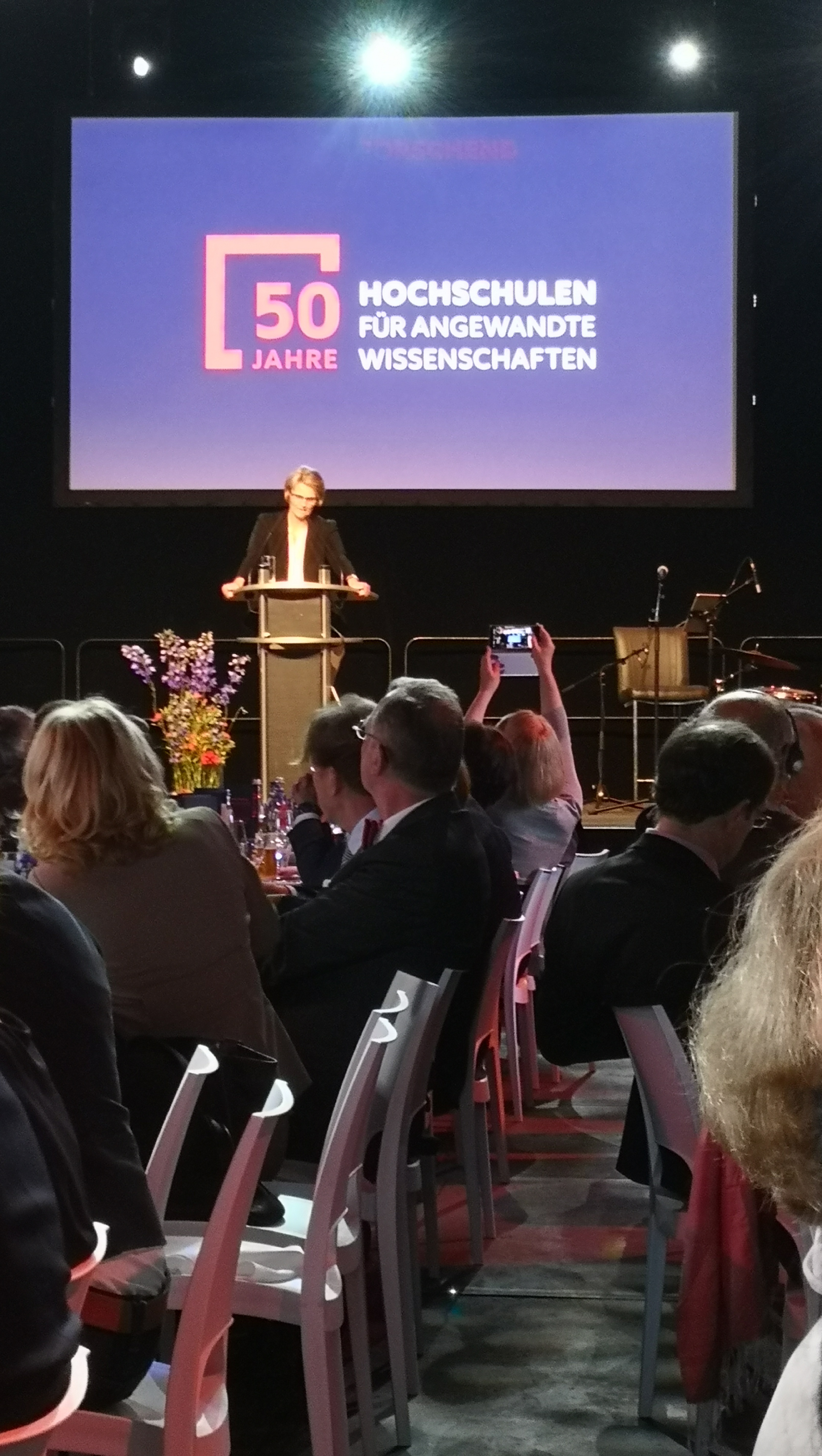 (3)参加德国应用科学大学成立50周年系列活动: 访问期间,代表团应邀出席由德国大学校长联席会议举办的德国应用科学大学成立50周年庆典,在庆祝活动中聆听德国教育研究部部长Karliczek女士、德国高校校长联席会主席Alt教授、石荷州教育科学文化部部长Prien女士等嘉宾详细、全面地介绍德国应用科学大学自成立至今的发展历史、探索之路及成功经验;并参加专家论坛“世界各类型高校体系的发展”,了解美国、芬兰、法国、中国等国举办应用型高校的成功经验及举措;并出席由吕贝克应用科学大学举办的国际研讨会“中国跨境教育项目的前景与挑战”,不仅了解到国内兄弟高校华东理工大学在举办中德合作办学项目过程中的经验及举措,同时就黑料网 在发展过程中遇到的挑战及取得的成效与国内外同仁进行分享。