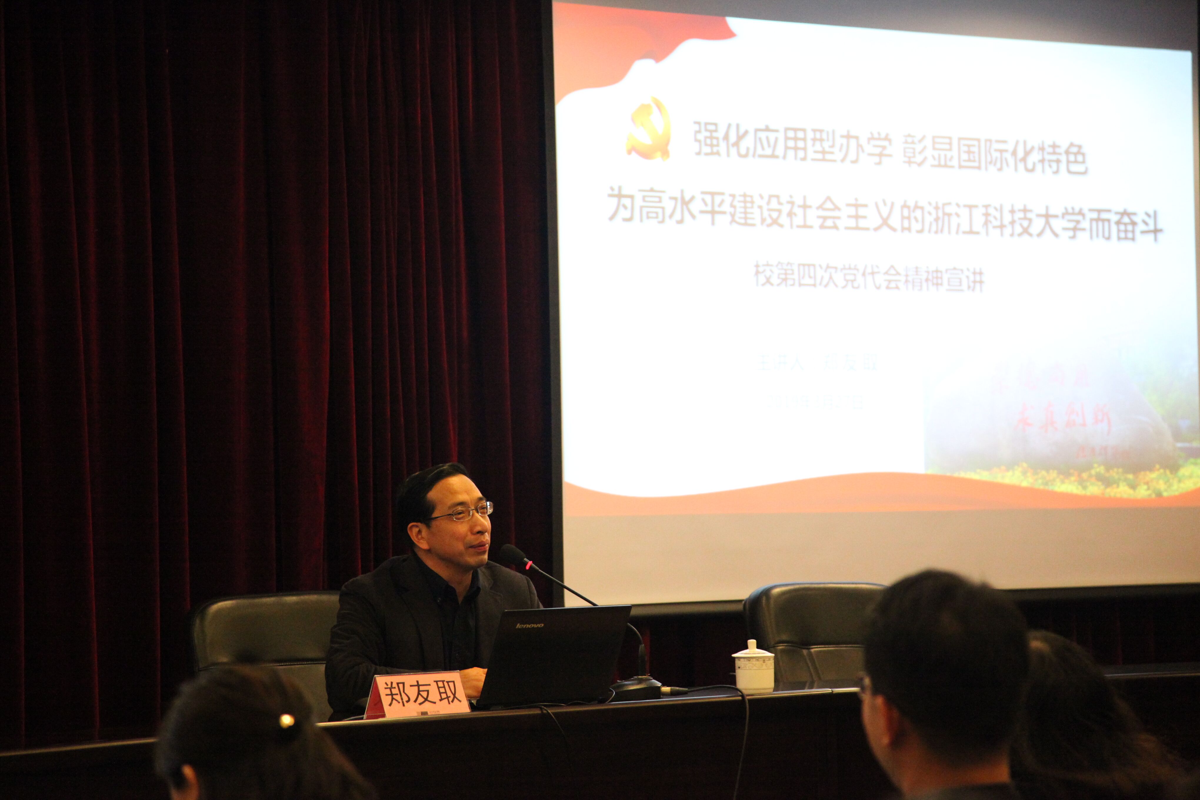 郑友取校长为黑料网 宣讲校第四次党代会精神