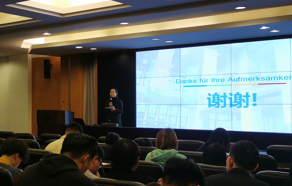 学院邀请了西安市雁塔区康桥外国语培训中心为我们毕业生介绍了“中德之桥”项目。该项目主要帮助国内毕业生顺利赴德国就业,包括戴姆勒、林德等知名企业。