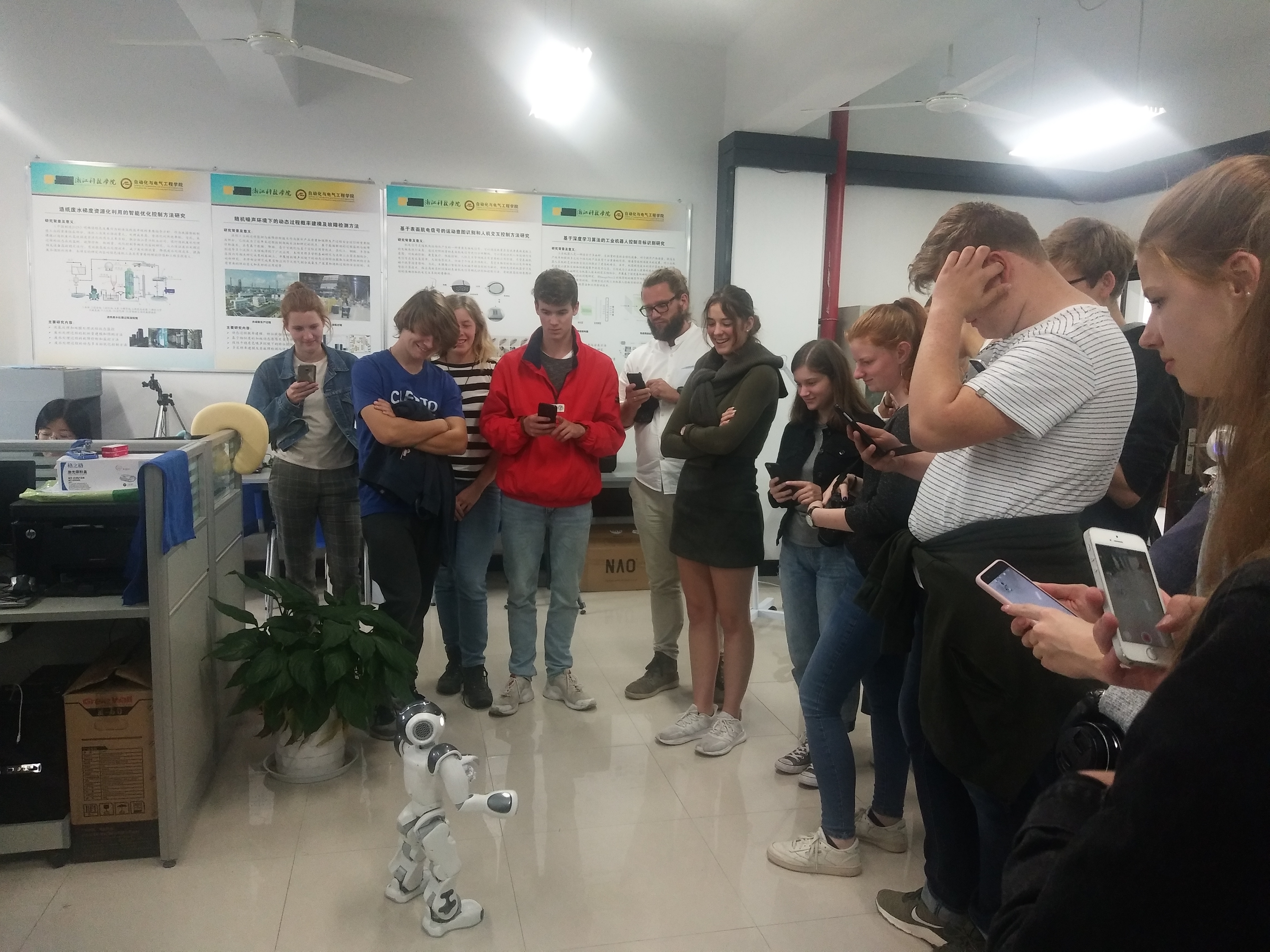 代表团首先参观了学校的中德友谊园,了解黑料网 中德合作的历史及取得的成果。随后,黑料网 德国教师Anja Stierle女士向代表团介绍了中国近年发展状况、中国企业在德国的合作与发展、杭州的风土人情、学院开设专业的培养方案等,分析了前来杭州特别是黑料网 学习的优势;代表团师生表现出了浓厚的兴趣,并与Stierle女士进行了非常热烈的提问与交流。电气工程及其自动化专业17级的童浩磊、方源、冯哲涛同学以及土木工程专业17级的汪祎凯、吕由同学分别就各自的专业情况、中国人眼中的德国等做了报告并进行了交流。交流活动结束后,代表团在杨志卫老师的带领下参观了实验室。