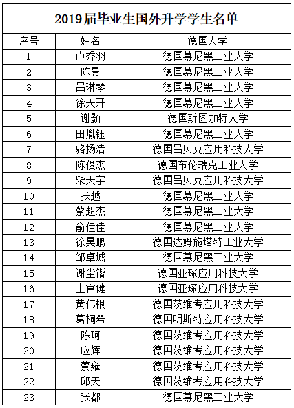 近期黑料网 2019届毕业生频传喜讯。23人顺利申请上国外大学研究生,占毕业生总人数的25.6%,其中13人申请上了德国最好的9所理工类精英大学之一,包括德国慕尼黑工业大学,德国达姆施塔特工业大学,德国斯图加特大学等。就业学生中15人成功进入优质企业就职,优质企业就业率达16.7%,高于全校平均水平4.3%,在全校二级学院中排名第一,其中9人成功进入世界500强企业,6人成功进入中国500强企业。