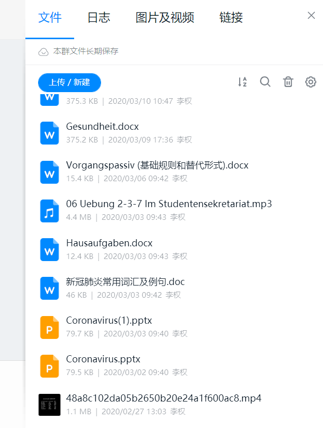 在新教学周前教师会上传接下来一周的作业,以听力、词汇补充、文章阅读、写作等练习穿插进行。除此之外教师会在每次上课结束后共享教学视频的录播文件及课件,供学生课后进行查漏补充。