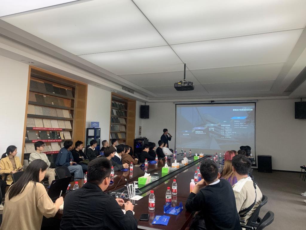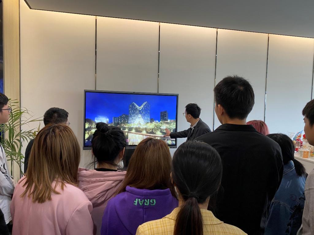 首先,同学们分为两组参观了该公司的文化展厅,让同学们对公司的发展历程、企业文化、产品业务等有了深入直观的了解。紧接着,在几位设计所所长的带领下,同学们观看了部分优秀的设计作品,观摩了各所员工们的现场作业,感受了现场的工作环境。最后,公司专门邀请了设计研究院方案设计所所长童鹏飞为同学们更加详实地介绍了公司的一些情况,同时,人力资源部总监汪黎霞女士也详细介绍了公司的岗位需求,并与同学们进行了现场答疑互动。同学们纷纷咨询了暑期实习与毕业后就业相关问题,互动现场气氛热烈。