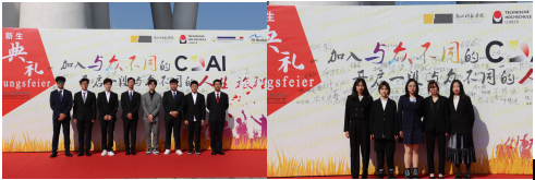 开学典礼在薛文院长的诚挚致辞中拉开了帷幕。典礼的第一幕为“喜迎新生”。吕贝克应用科技大学副校长Schwartze教授和茨维考应用科技大学的Schumann教授虽遗憾没有到现场,但也以视频的方式为新生们带来最真挚的问候。学院新生代表李慧勤同学上台代表同学们发言,讲出了自己作为新生的期许与展望。
