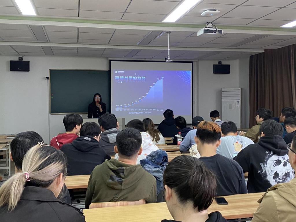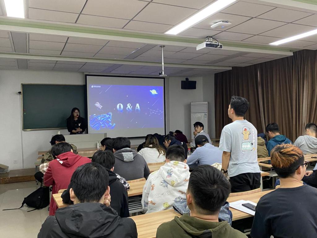 会上,企业代表丁老师通过对企业背景、公司状况、岗位职责、职业晋升、福利待遇等内容做了详细介绍。企业先进的发展理念、完善的人才培养体系等优势引起了不少同学的兴趣。丁老师还传授了一些求职过程中的技巧,并希望同学们都能成为舜宇人。在自由提问环节中,同学们积极互动,丁老师耐心解答,现场有不少同学与企业达成了初步意向。