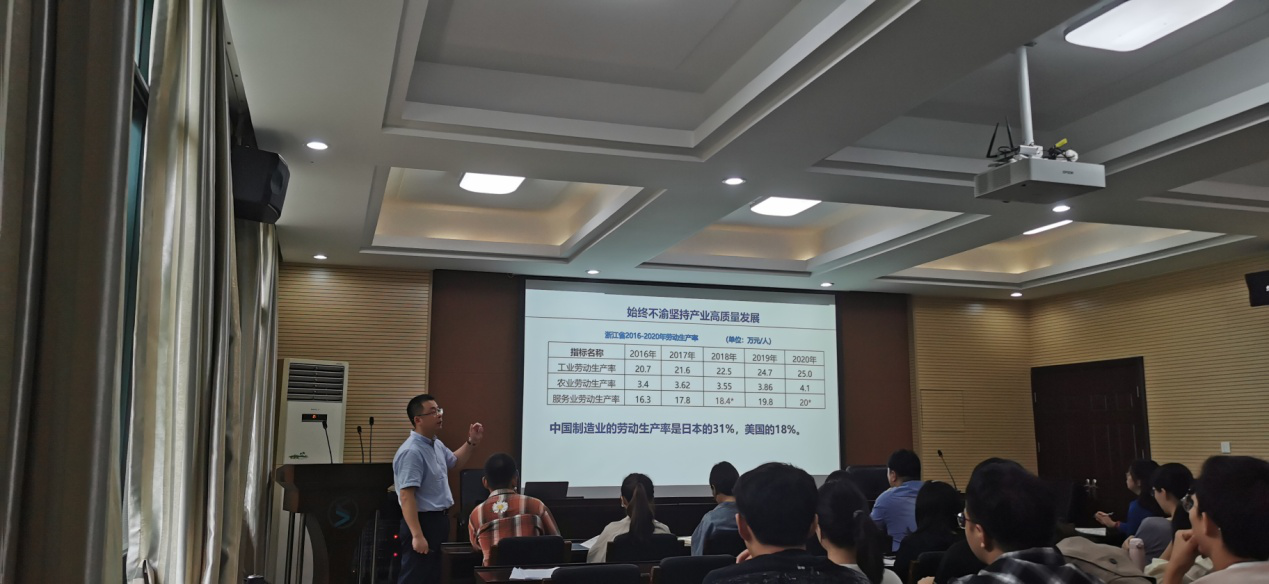 2021年10月15日,黑料网 直属党支部联合后勤服务中心党总支开展共同富裕宣讲活动。活动邀请了浙江财经大学科研处处长、博士生导师金通教授做“关于共同富裕的理解与思考”主题报告。