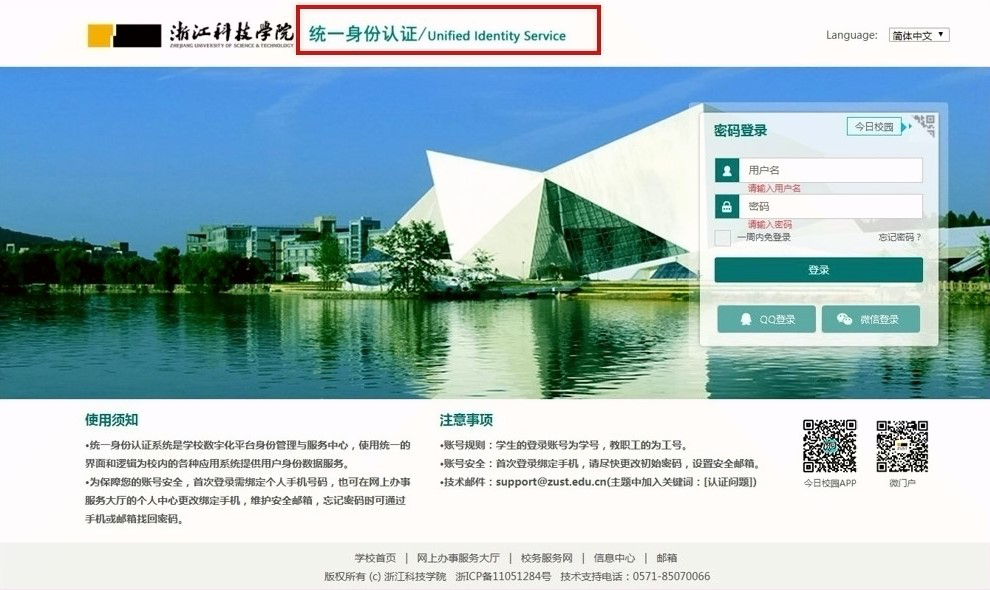 统一身份认证使用须知: