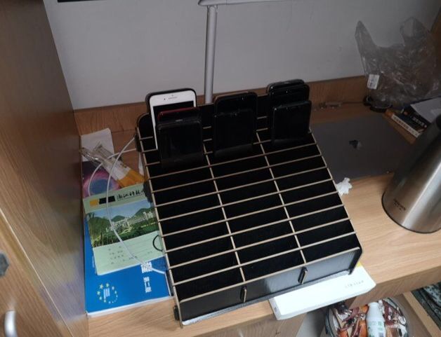 为了保证良好的晚自修在寝室的学习环境,由班长将大家的手机统一放置到手机收纳盒内等晚自修结束再统一发放。由于普凡同学组成的寝室长督察小组晚自修期间检查各个寝室的学习氛围是否良好,并对各寝室学习氛围打分。月末对评分最高的寝室进行零食奖励。