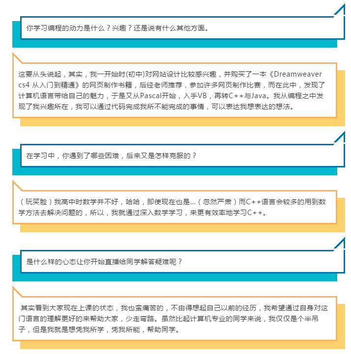 某直播平台为何聚集CDAI学子?童鞋们C++水平为何突飞猛进?他又为何成为同学心中新晋男神?欢迎走进本期“学风启示录”之“C++主播——叶超炜”