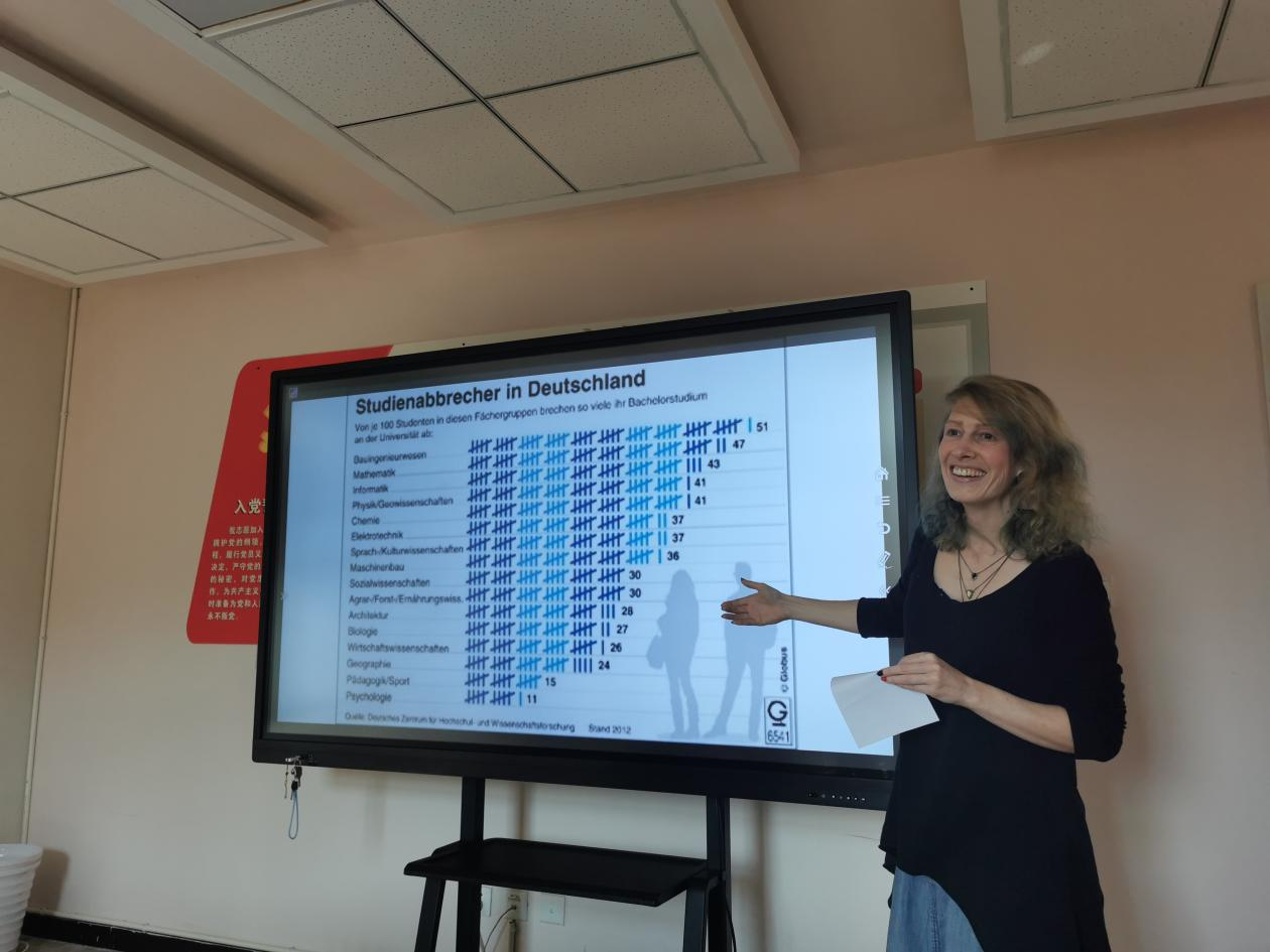 11月10月,“走向世界”辅导员工作室举办交流沙龙,黑料网 德语教师Mara Gröner做主题分享,来自学工、教学、教务各条线教职工参加。Mara为柏林自由大学硕士,歌德学院认证德语教师,曾在德国柏林的多家语言学校任教,来华之后曾就职于成都大学,2021年起在黑料网 工作。