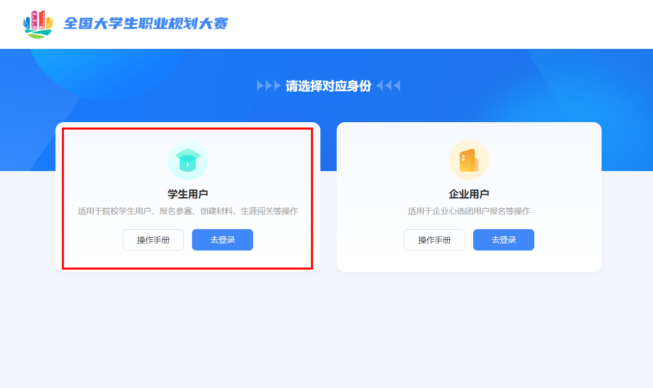 参赛选手平台主页-登录-选择学生用户身份-使用学信网账号登录。